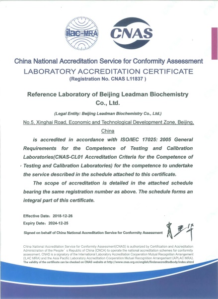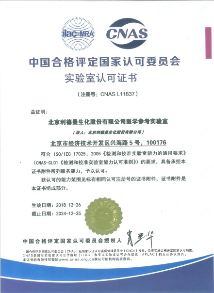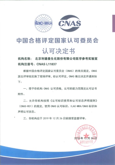 2018年12月26日,星空网页版登录入口医学参考实验室(以下称参考实验室)顺利通过中国合格评定国家认可委员会(CNAS)认可。