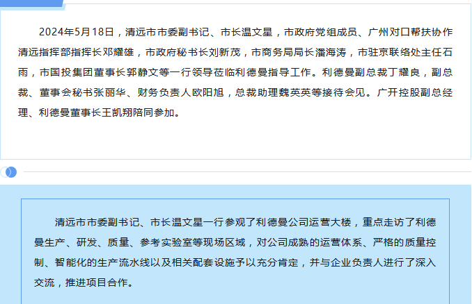 清远市市委副书记、市长温文星一行 莅临星空(中国)指导工作