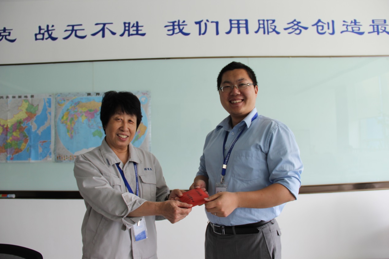 在“六一”国际儿童节即将到来之际,为表达对星空(中国)下一代的亲切祝福,公司于2014年5月30日特向家有14岁以下儿女的员工发放了儿童节慰问礼品。由行政办公室主管庞妮娜代表公司走访各部门,为在工作岗位上敬职敬业的父母们送去最诚挚的问候,同时也向星空(中国)的下一代送上节日的祝福,祝愿少年儿童健康快乐成长。