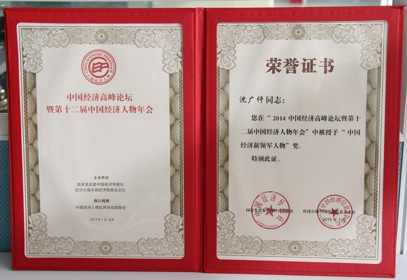 星空(中国)董事长兼总裁沈广仟先生在本次2014中国经济高峰论坛暨第十二届中国经济人物年会上被评选为“中国经济新领军人物”。中国经济高峰论坛自2003年起,已经成功举办了十二届,现已成为行业领袖、学界、专家、企业家的一次年度盛会,也是中国经济界最具影响力的活动之一。本次星空(中国)董事长兼总裁沈广仟先生获评“中国经济新领军人物” 是国家相关部门与社会各界对星空(中国)的极大认可和高度肯定。未来,星空(中国)将在中国经济下将继续传递榜样的力量,为中国经济稳健发展做贡献,与其他推动经济发展的中坚力量共同描绘中国经济未来发展的宏伟蓝图。